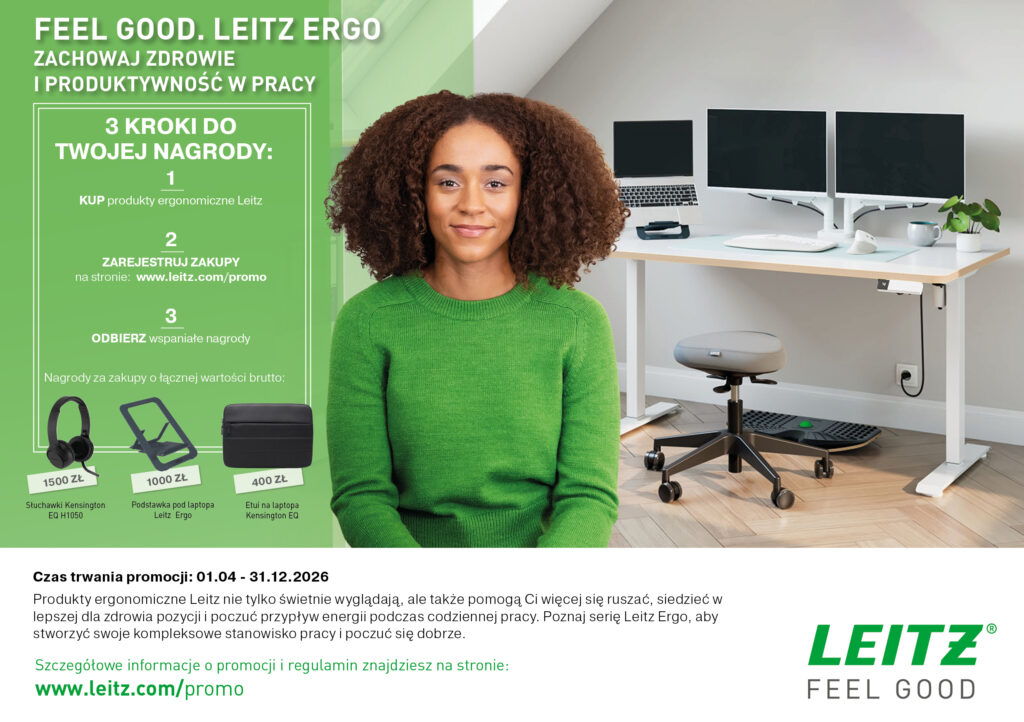 FEEL GOOD. LEITZ ERGO ZACHOWAJ ZDROWIE I PRODUKTYWNOŚĆ W PRACY /01.04-31.12.2026/ Zobacz więcej FEEL GOOD. LEITZ ERGO ZACHOWAJ ZDROWIE I PRODUKTYWNOŚĆ W PRACY /01.04-31.12.2026/ Zobacz więcej
